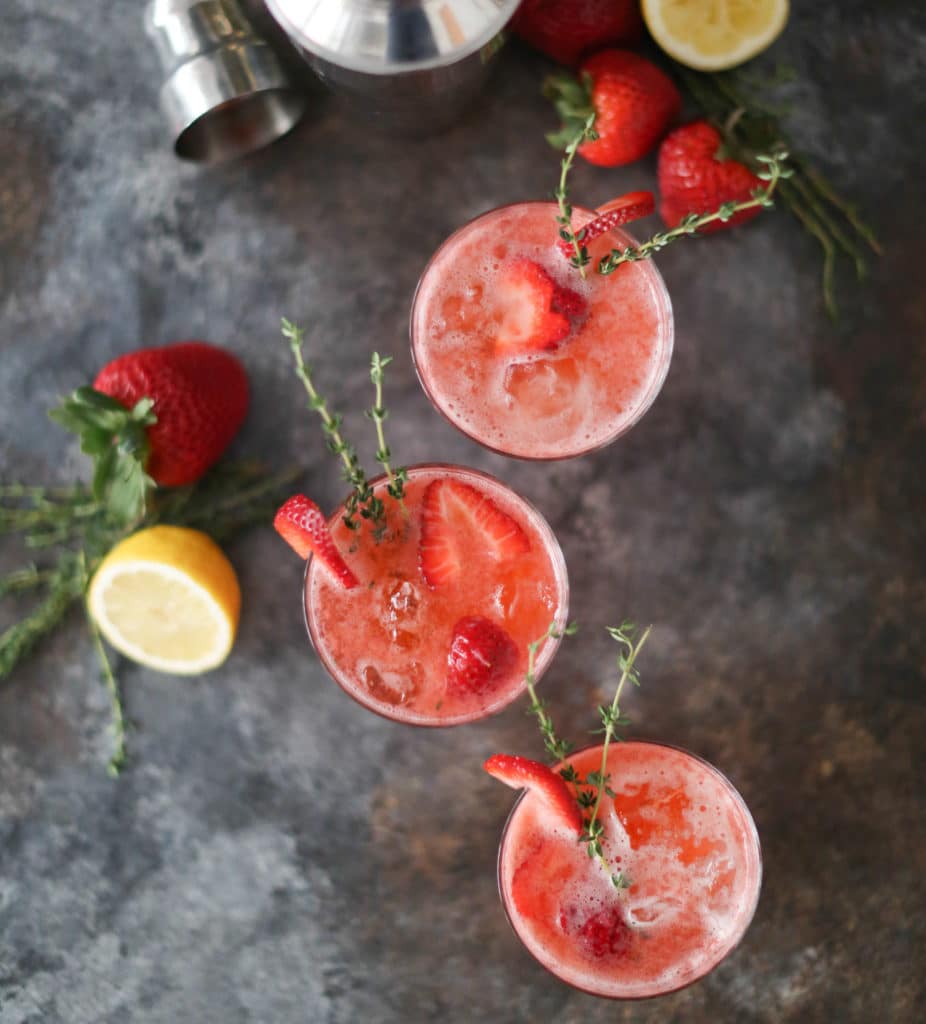 Made with muddled strawberries, thyme, lemon, vodka, and St. Germain, this refreshing Strawberry Thyme Cooler is perfect for all your summer celebrations!