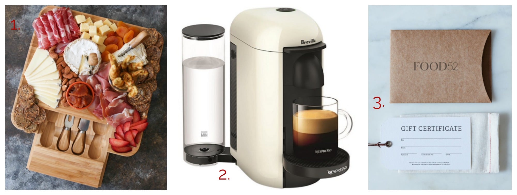 - Food 52 Gift Certificate. I’m not usually a fan of gift certificates (they feel sorta impersonal, you know?), but if you’re feeling panicky about committing to a specific item, Food 52’s shop is a straight up playground for chefs, foodies, and interior design enthusiasts.