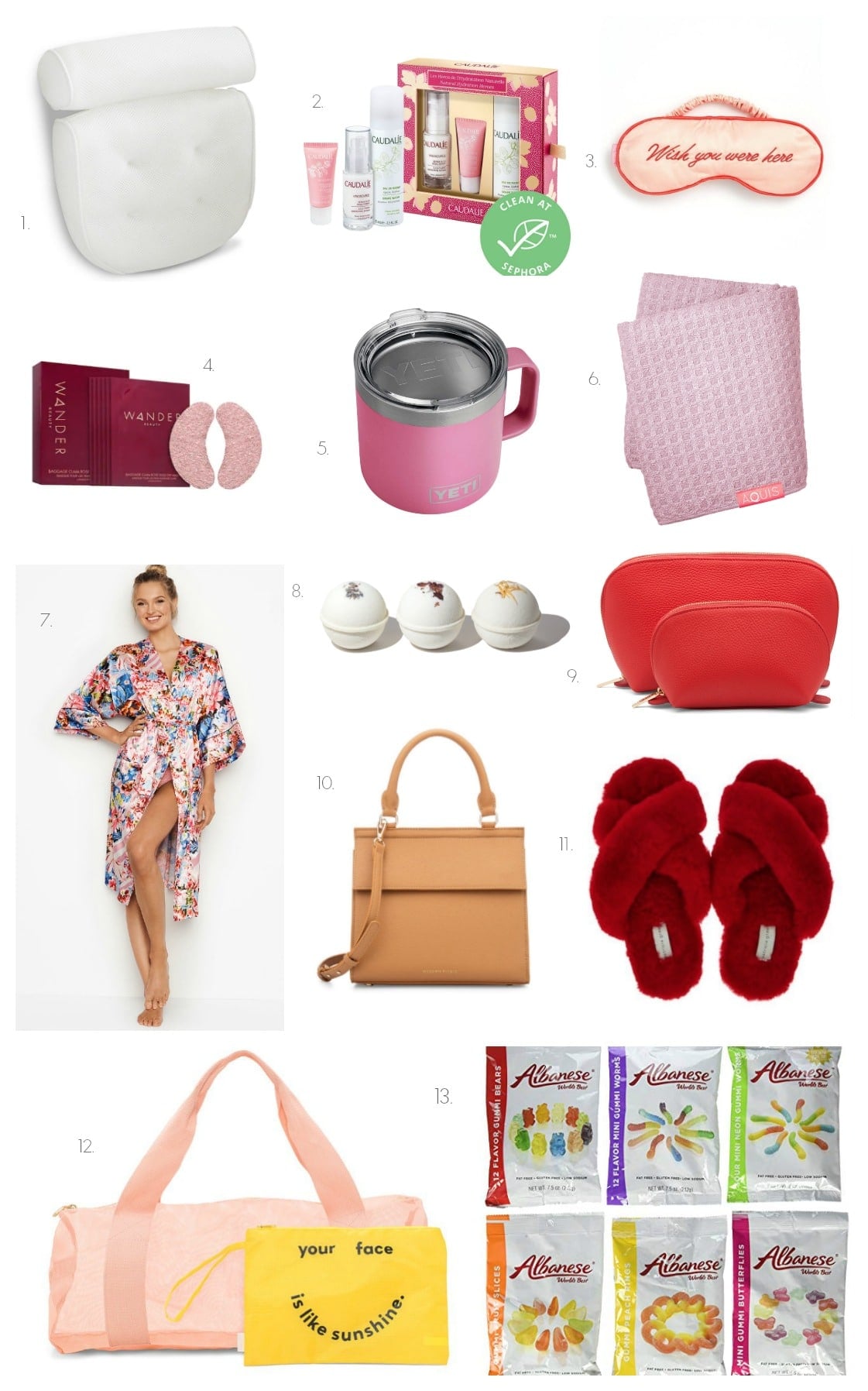 3. Wish You Were Here Satin Eye Mask. Anyone without blackout curtains can appreciate the value of a good sleep mask, and this one is particularly sweet. Plus, satin eye masks have been shown to reduce fine lines around the eyes. This is important.
