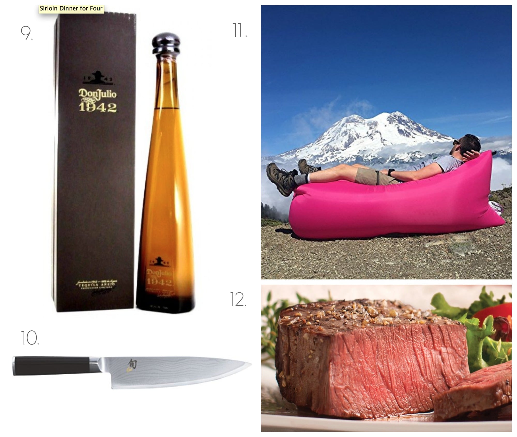 11. Hangout Sofa. This baby inflates in seconds without a pump and can be used for chilling everywhere from the backyard to the park or beach. If you know an outdoorsy dad or nap aficionado, this would make quite the practical (yet still exciting) present.