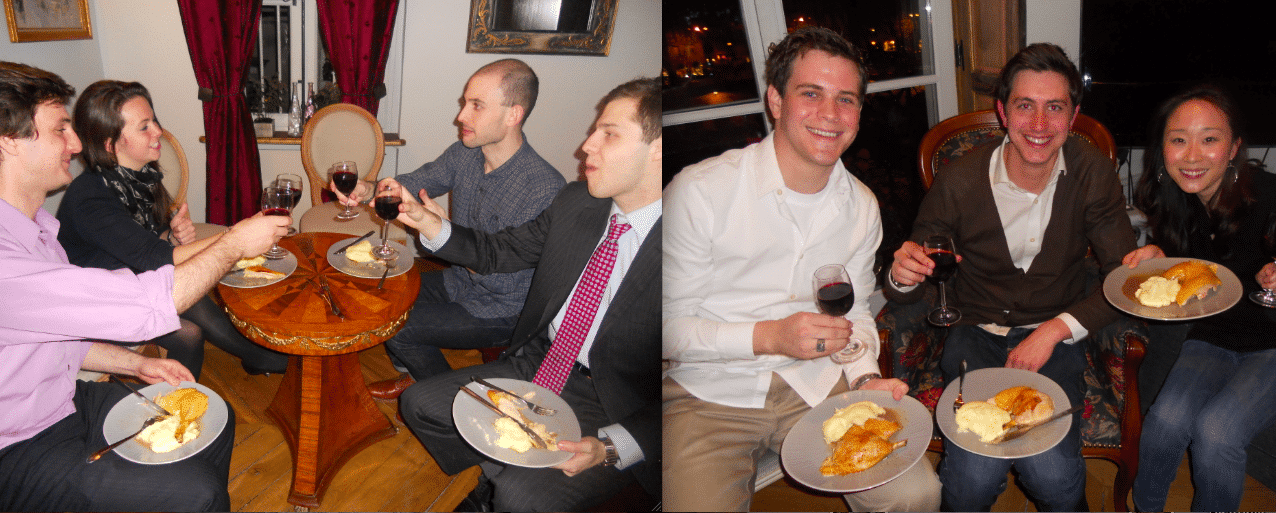 Because I had class the day of our dinner party, Liberty very generously offered to do all of the shopping. She called me from the market saying that their chickens did not look up to snuff, so she was going to try a local butcher’s shop. I admired her courage and Parisian sense of adventure, sending her forth to le boucherie with high hopes. She triumphantly called a half hour later to inform me that she had purchased the “most beautiful chickens she had ever seen.” Apparently, Liberty hasn’t seen very many chickens.