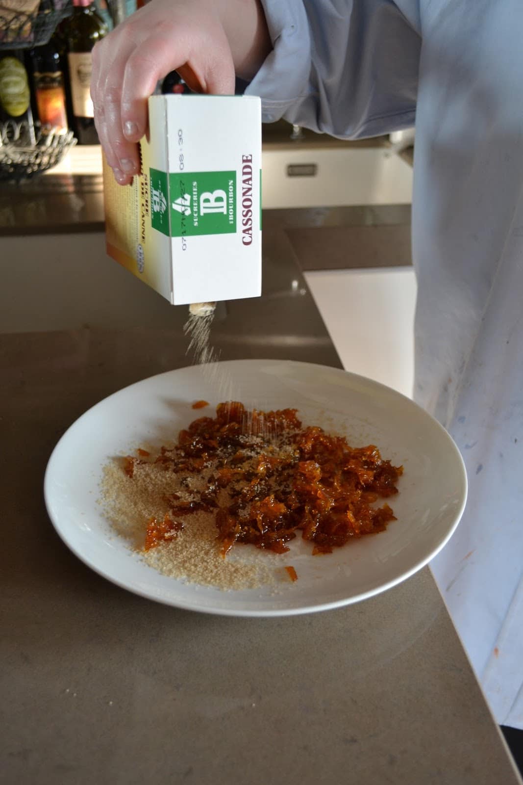 -As soon as the sugar mixture boils, add the orange peel that has been blanched three times.