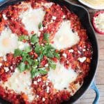You can simply scoop your fabulously flavorful baked eggs into bowls (or hoover them straight from the skillet), but I like to serve them with some warm corn tortillas and guacamole for extra awesomeness. Livin’ la vida loca.