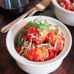 I’m also pleased to inform you that Herbed Chicken and Ricotta Meatballs are studs on the nutrition front, friends. They’re packed with lean protein, low in fat (you’re going to bake them versus browning them in oil), and they just happen to be gloriously gluten-free. Plus, the homemade tomato sauce is bursting with antioxidants, and it’s much lower in sugar and oil than the jarred stuff. Hallelujah.