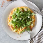 The frittata probably gets the most action on my list because a.) I always have eggs in the fridge and something to dress them up with, and b.) it takes approximately 6 minutes from start to finish. Obviously the possible frittata flavor combinations are endless, but I tend to gravitate toward some version of “vegetable parm” or this simple prosciutto and goat cheese number topped with lightly dressed arugula.