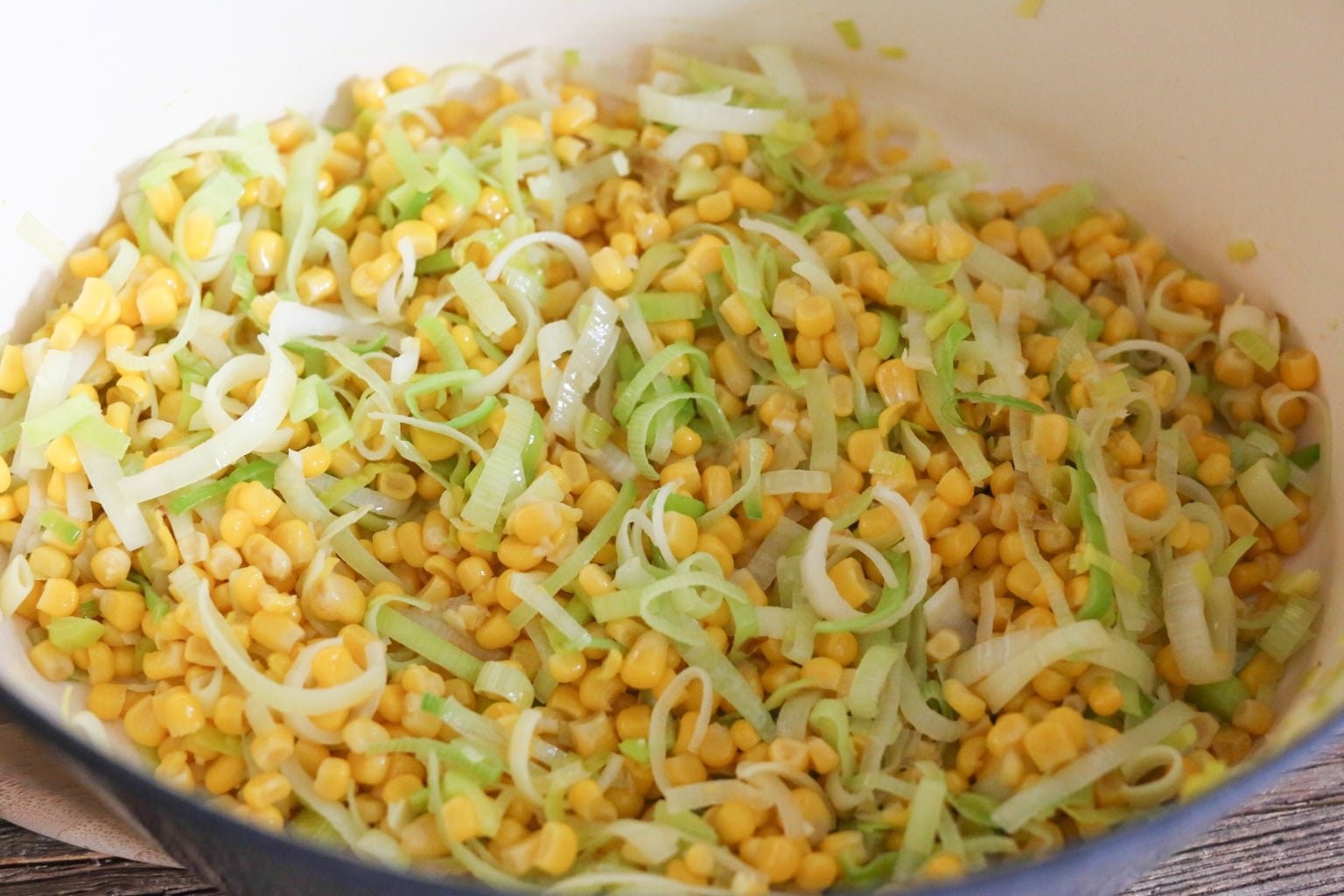 Preparing your Roasted Potato, Corn, and Leek Chowder: