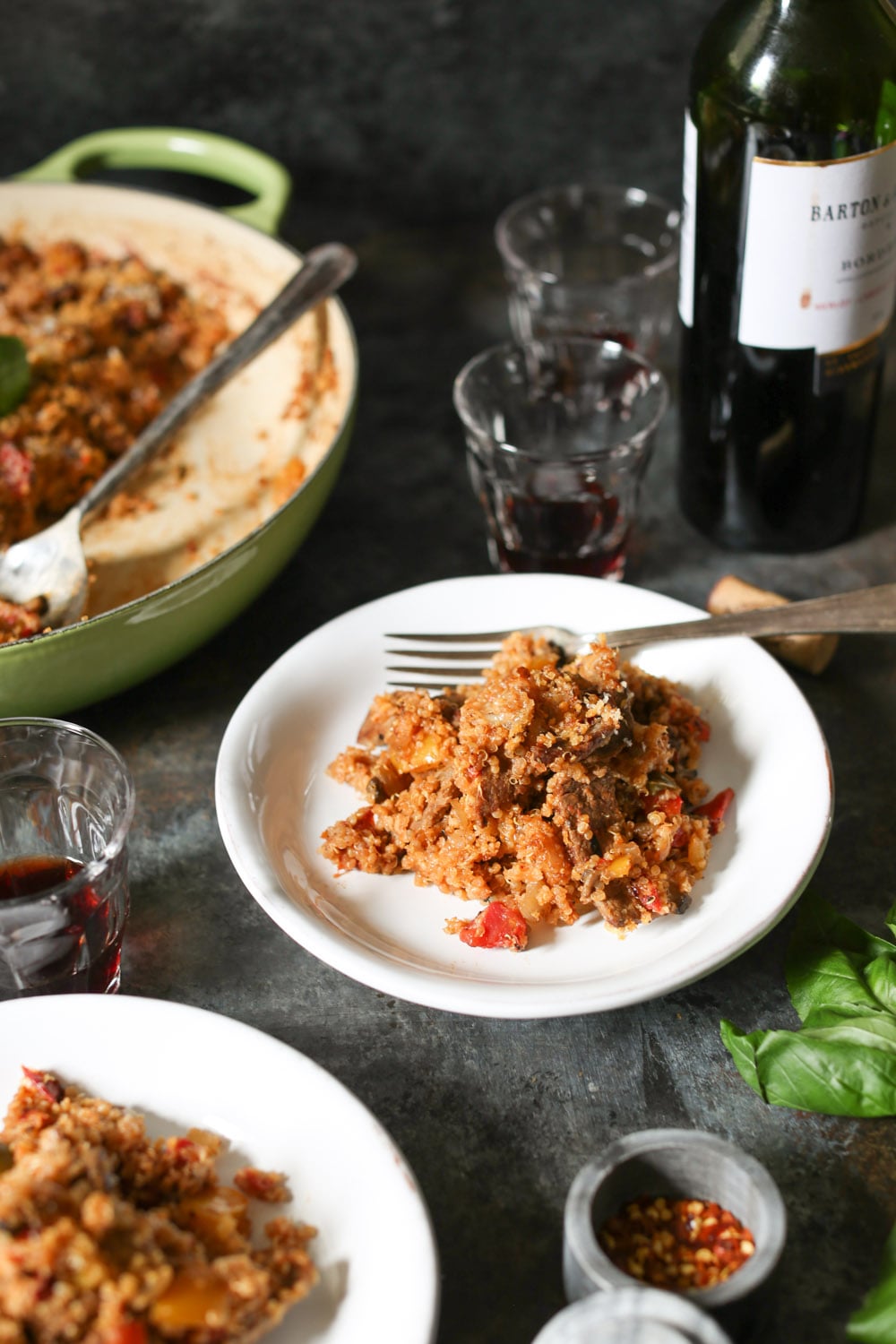 I know I say this about every quinoa bake, but this one might be my best yet? Loaded with thinly sliced steak, sautéed onions, bell peppers, portobellos, marinara, and cheese, it’s got all the beloved flavors of Philly’s dankest hybrid sub. My live-in cheesesteak connoisseur (aka Logan) has now eaten it for three straight days (last night he ate it as a “side” with his chili), and I don’t think I’ve heard such ecstatic grunting since the Cheeseburger Quinoa Bake’s 2015 debut. Great success.
