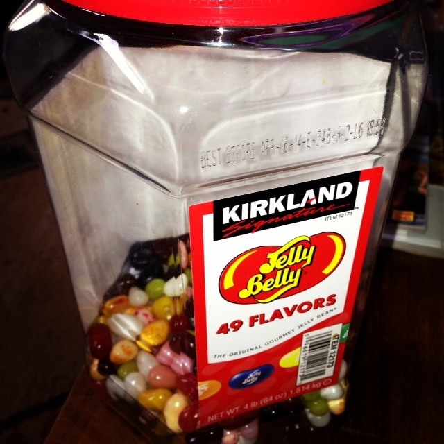 My mother made the mistake of giving us a 4-pound container of Jelly Bellys for Easter, so I’ve been observing Logan’s “scoop, shake, toss” routine regularly over the past three weeks. He defended this eating method yesterday, saying, “The problem with Jelly Bellys is that they’re too small. I mean, if I put just one in my mouth there would be like nothing to chew.” (Deep thoughts by Logan.) I’m also concerned that he thinks jelly beans are healthy because it says “fat-free” on the container. Dudes, “fat-free” does not mean “calorie-free,” capiche? And in case you were wondering, a handful of jelly beans is one serving. Eating 10 servings at once in unacceptable. And gross.